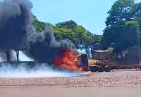 VÍDEO: Carreta é destruída por incêndio em pátio de cooperativa na região de Goioerê