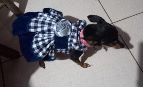 A cachorrinha está usando o vestido da foto, quando desapareceu.