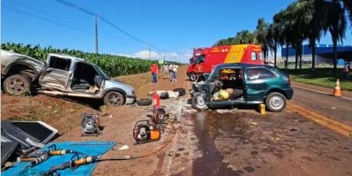 A colisão envolveu duas caminhonetas, uma Chevrolet S10 e uma Hilux, além de um VW/Gol. As equipes de socorro ainda permanecem no local fazendo o atendimento.