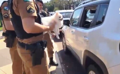 A Polícia Militar (PM) de Toledo salvou um cachorro da raça “Lulu da Pomerânia Albina Anã”, que estava trancado no porta-malas de um carro no sol na tarde de domingo, 17. O carro estava nas proximidades do Shopping Panambie o dono não foi localizado. Os responsáveis pelo animal foram levados à Delegacia para responder por maus-tratos a animais. Eles são de Goioerê.