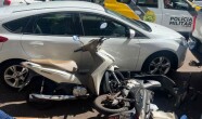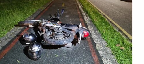 Apesar de a moto ter percorrido vários metros após a queda, o piloto sofreu apenas ferimentos leves.