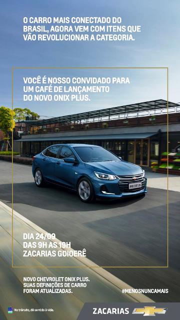 A Zacarias Veículos de Goioerê está convidando amigos e clientes para um café de lançamento do novo Ônix Plus, que será realizado nesta terça-feira, 24, das 9 às 19 horas, na concessionária.