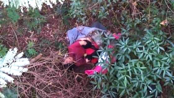 Na imagem divulgada pela Polícia Militar (PM), é possível ver que o corpo foi abandonado em uma área de mata. Além das mãos, os pés e a boca da vítima também foram amarrados.