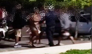Durante a confus�o, os dois caem no ch�o e um dos envolvidos imobiliza o outro, momento em que a tens�o aumenta. O aluno que domina a briga grita repetidamente: �quem que � o merda agora?�, em meio ao tumulto. A situa��o se agrava at� que outro aluno da turma grita: �separa, separa, vai matar, vai matar!�