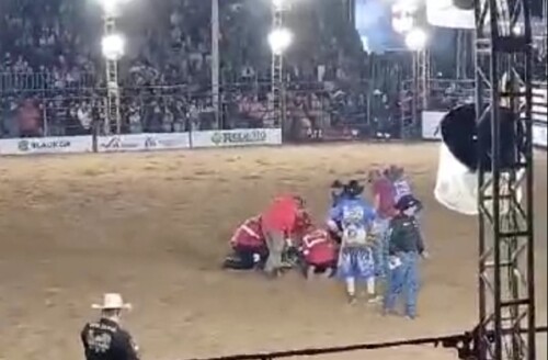 As imagens mostram que depois de sofrer uma queda, o touro que João Vitor montava o pisoteou. Ele chega a levantar, caminha alguns passos e cai, e o socorro médico é acionado.
