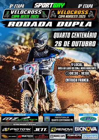 Os motores vão roncar forte neste domingo, 26 de outubro, em Quarto Centenário. O município será palco da rodada dupla do Velocross, reunindo pilotos de toda a região para a 6ª etapa da Copa Oeste 2025 e da Copa Noroeste 2025, em um dia de muita emoção e velocidade sobre duas rodas.