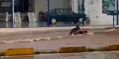 A outra imagem emblemática é a de uma motocicleta Honda Biz sendo arrastada pela enxurrada em uma rua da região central da cidade.