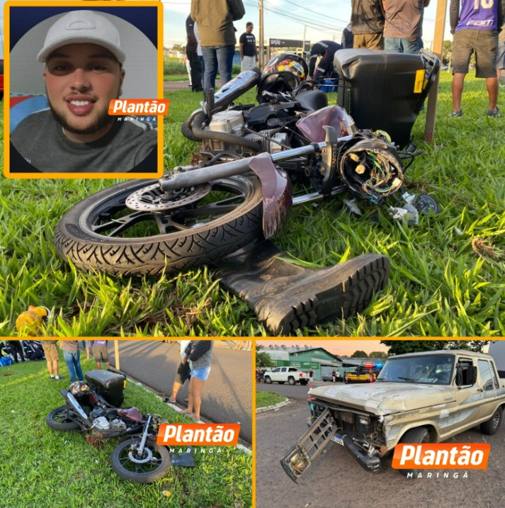 Um grave acidente registrado na tarde deste sábado (8) tirou a vida do motociclista João Pedro Farias Maia, de 27 anos, na Avenida Morangueira, em Maringá. A colisão envolveu a motocicleta conduzida por João Pedro e uma caminhonete Ford F1000.