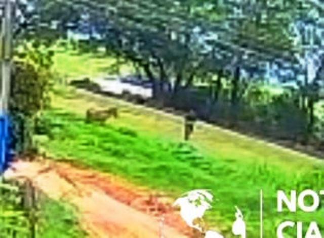 Imagens de uma câmera de segurança mostram o momento que um burro foi furtado de uma propriedade próxima à rodovia estadual PR-323, no município de Tapejara (62 km de Goioerê).