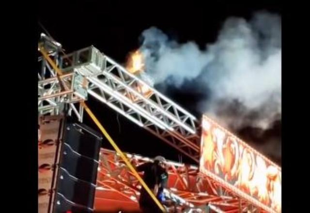 O fogo começou na parte superior do palco e um funcionário da equipe escalou a estrutura até o local do incêndio, contendo as chamas e impedindo que se expandisse para outras partes da estrutura.