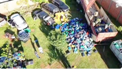Com o grupo, os agentes encontraram centenas de fardos de maconha embalados e identificados. A frota utilizada pelo narcotráfico incluía dois caminhões-tratores, um caminhão, 14 caminhonetes e dois carros, todos preparados para transportar apenas o motorista e a carga.