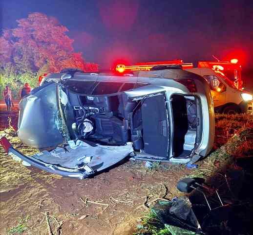 Um violento acidente foi registrado na rodovia PR-472, entre Goioerê e Juranda, próximo ao distrito de Primavera, na noite do último sábado, 6, quando um veículo Cruze saiu da pista e capotou.
