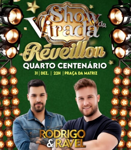 A virada de ano em Quarto Centenário promete muita música e animação. A Prefeitura Municipal, com apoio da Câmara Municipal, realiza no dia 31 de dezembro o Show da Virada, que terá como atração principal a dupla Rodrigo & Ravel.