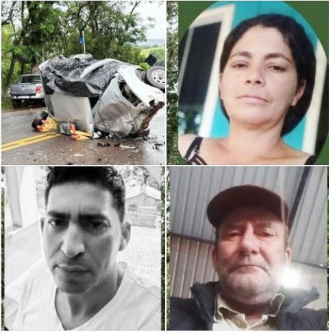 Rogério João Harlack, 53 anos, e Ivan Rodrigues, 42 anos, moradores de Dois Vizinhos, além de Rosângela da Silva Santos Prado, 42 anos, moradora de São Jorge D’Oeste, perderam a vida no local do acidente.