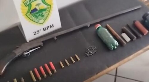 Equipes da PM de Umuarama se deslocaram até o local indicado, onde localizaram o marido, que apresentava sintomas de embriaguez. Os policiais, então encontraram a arma e os petrechos de carregamento de cartuchos.