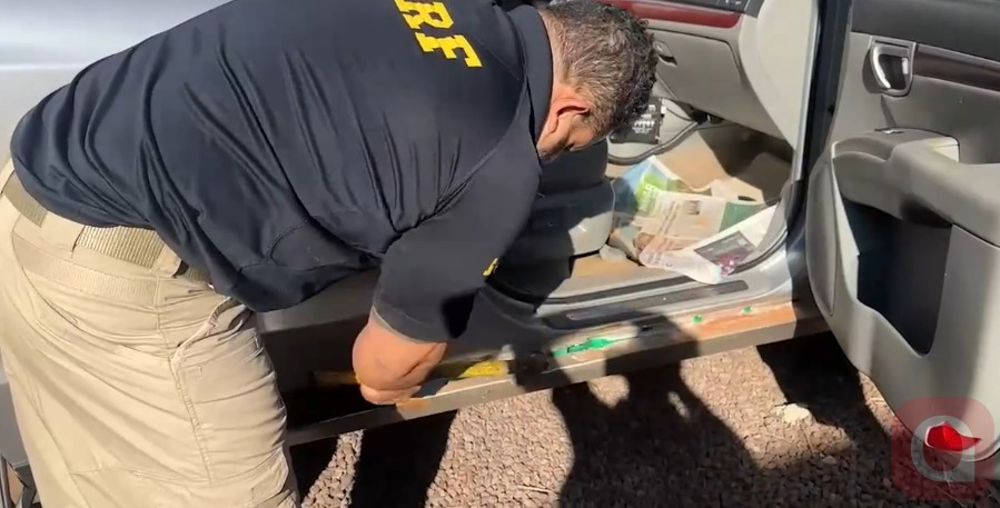 De acordo com a PRF, a equipe abordou o condutor de um veículo Santa Fé e, durante vistoria, encontrou a grande quantidade de maconha escondida em compartimentos ocultos no assoalho do porta-malas, nas laterais traseiras e nas caixas de ar do automóvel.