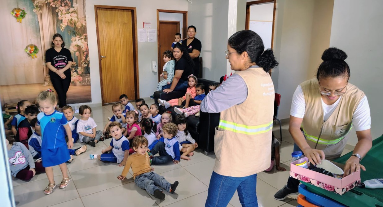 Durante as visitas às unidades de ensino, os profissionais promovem atividades educativas de forma lúdica e acessível, explicando às crianças como ocorre a proliferação do mosquito transmissor da dengue e destacando a importância de eliminar água parada, principal criadouro do inseto.