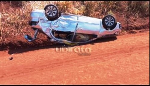 O acidente envolveu um caminhão e um automóvel, ocorrendo uma colisão lateral entre os veículos. Após o impacto, o carro perdeu o controle, capotou e acabou parando em um baixo relevo às margens da rodovia.