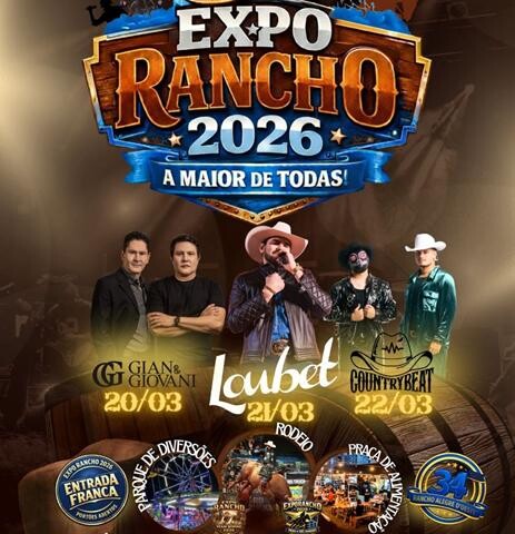 A cidade de Rancho Alegre D’Oeste já vive o clima de expectativa para a Expo-Rancho 2026, que começa nesta sexta-feira, 20, e promete reunir grande público durante todo o fim de semana, com grandes shows gratuitos. O evento celebra os 34 anos de emancipação do município e traz uma programação completa com shows nacionais, rodeio profissional, competições tradicionais e diversas atrações para toda a família.