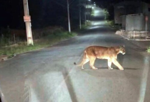 Está circulando em redes sociais de Goioerê, em especial em grupos de whatsapp, uma fotografia de uma onça parda, cruzando uma rua, com a informação de que a foto foi feita no Jardim Universitário.