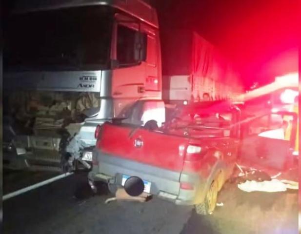 Também foram encaminhados ao hospital o motorista da segunda picape, uma mulher de 36 anos e um jovem de 19 anos, ambos com ferimentos leves. O condutor da carreta, de 42 anos, saiu ileso do acidente.