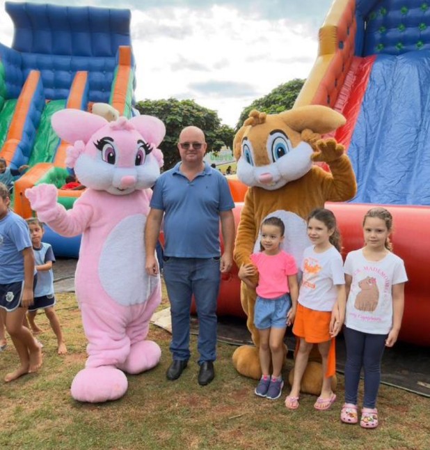 Uma grande festa marcou a celebração da Páscoa na manhã desta quarta-feira em Quarto Centenário. O evento foi realizado na Praça da Igreja Matriz e reuniu diversas crianças e famílias do município em um momento especial de lazer e confraternização.