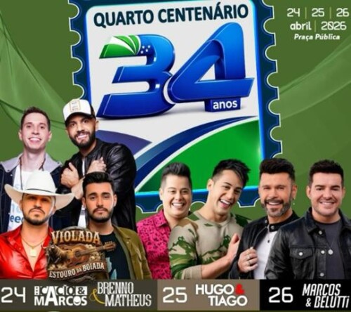 A expectativa é de que a festa movimente a cidade e se torne um grande sucesso, marcando mais um aniversário de Quarto Centenário com música, confraternização e participação da população.