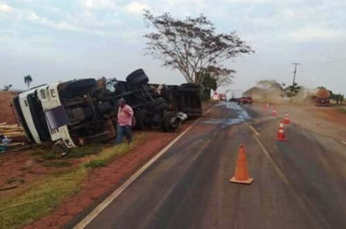 Com a batida o caminhão tombou na pista, derrubando parte da carga de madeira de eucalipto. A rodovia precisou ser interditada para o trabalho da perícia e remoção dos veículos. O trânsito foi desviado por uma estrada de terra, às margens da rodovia.