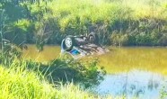 Carro fica submerso após capotar entre Goioerê e Campo Mourão. Mulher ficou ferida