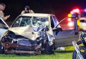 Carro fica destruído em acidente na região de Goioerê e pessoas falam em “livramento”