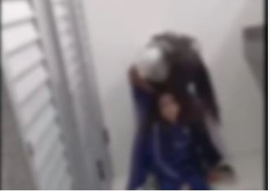 CLIQUE ABAIXO E ASSISTA AO VÍDEO QUE MOSTRA A AGRESSÃO NO BANHEIRO