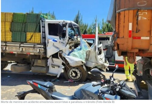 Segundo o Corpo de Bombeiros, a comoção tomou conta do local assim que a morte da criança foi confirmada. Testemunhas relataram que os socorristas choraram durante o resgate, diante da cena de destruição na cabine do caminhão.