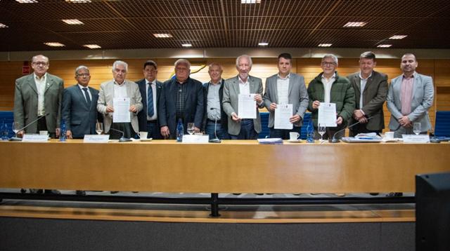 Foi assinado o contrato oficial com o Consórcio Engerama–TAB, vencedor da licitação para a construção da nova unidade integrada do Sesc/Senac em Goioerê. A assinatura contou com a presença de Nelson Bizotto, presidente do Sindempresarial de Campo Mourão e Região, de Darci Piana, presidente da Fecomércio, e de representantes da empresa responsável pela execução da obra, reforçando a união das entidades envolvidas no processo. O investimento total ultrapassa R$ 29,4 milhões, representando uma das maiores obras já projetadas para o município.