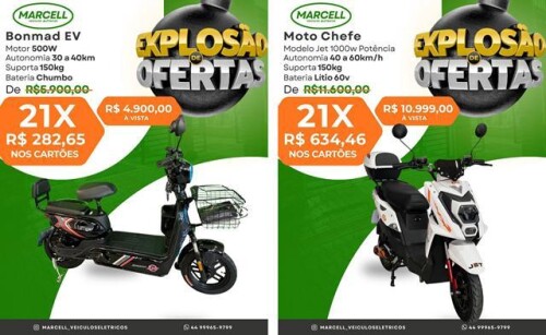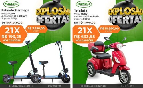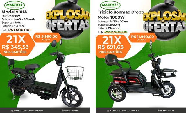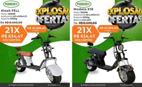 A Marcell Veículos Elétricos está com uma grande promoção, oferecendo diversos modelos de motos, scooters, patinetes e triciclos elétricos com preços especiais e condições facilitadas de pagamento.