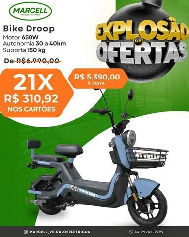 Bike Droop 650W – R$ 5.390,00 à vista ou 21x de R$ 310,92