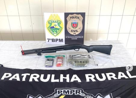 Um jovem de 20 anos foi preso em flagrante em Goioerê de posse de uma espingarda com numeração suprimida. A prisão foi realizada em uma operação conjunta das polícias civil e militar.