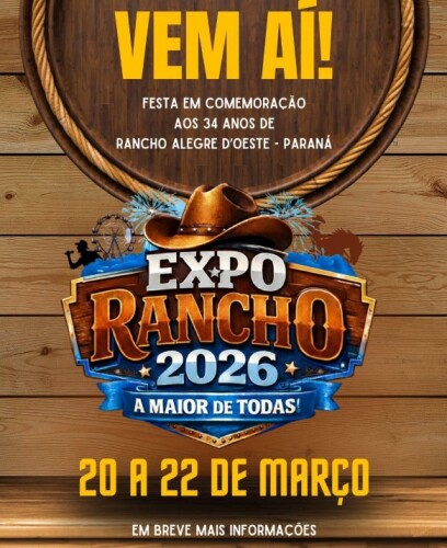 A comissão organizadora da Expo Rancho 2026 já iniciou os preparativos para uma das principais comemorações do calendário de Rancho Alegre D’Oeste. A festa, que celebra os 34 anos de emancipação do município, será realizada entre os dias 20 e 22 de março, no Parque de Exposições.