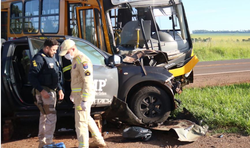 Um grave acidente envolvendo uma caminhonete e um ônibus do transporte coletivo urbano, na manhã de segunda-feira (16), deixou seis pessoas feridas, entre estado moderado e grave, na rodovia BR-272, na saída de Campo Mourão para Goioerê.