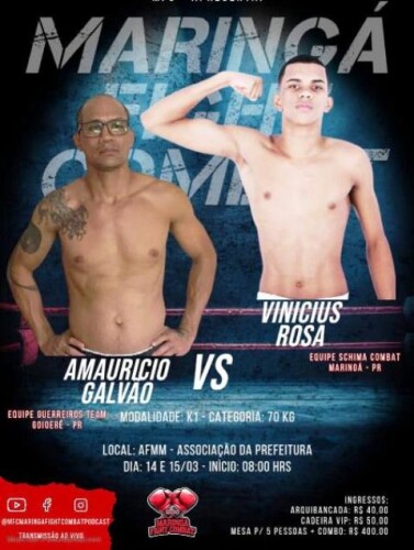 O lutador goioerense Amauri Galvão tem combate marcado para os dias 14 e 15 e março, na sede da AFMM – Associação dos Funcionários Municipais de Maringá, quando irá enfrentar o lutador Vinicius Rosa,deMaringá.