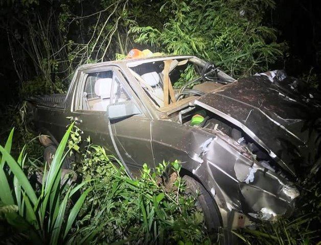 O veículo recuperado apresentou danos em decorrência da saída de pista. A remoção foi realizada com auxílio de guincho, devido à dificuldade de acesso e à baixa luminosidade no trecho.