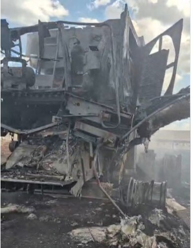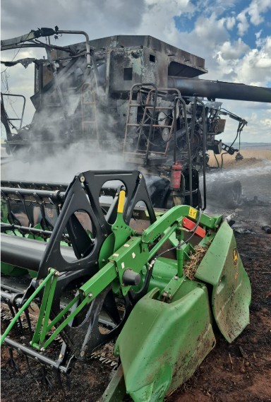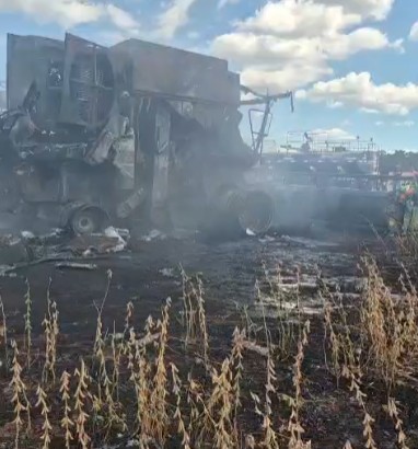 Na tarde desta quinta-feira, 26, uma colheitadeira foi completamente destruída por um incêndio em uma propriedade rural localizada entre Boa Esperança e Janiópolis.