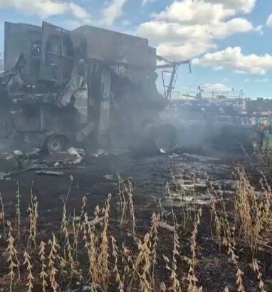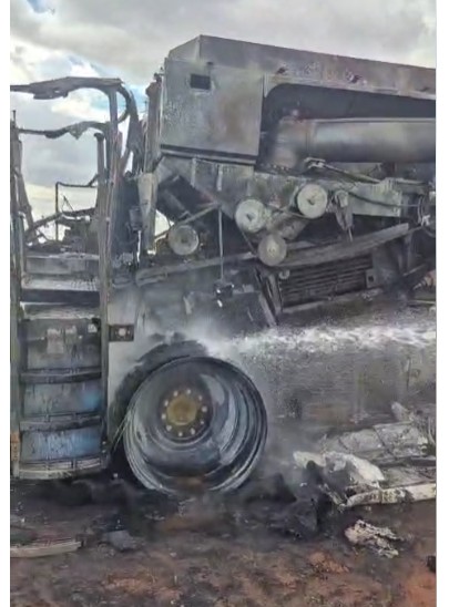 Segundo informações, o operador da máquina percebeu o início das chamas, desceu rapidamente da colheitadeira e ainda tentou conter o fogo, mas não conseguiu evitar que o incêndio se alastrasse. Em poucos minutos, as chamas tomaram conta do equipamento, que ficou totalmente destruído.