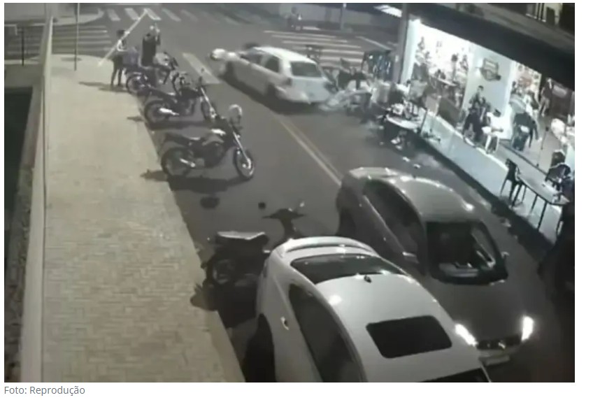 Uma câmera de segurança registrou o momento em que o carro atinge as vítimas e deixa o local. Nas imagens, várias pessoas aparecem correndo para prestar socorro. Assista (ATENÇÃO, CENAS FORTES):
