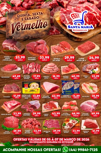 O Supermercado Santa Maria, de Moreira Sales e integrante da rede Nova Plus, preparou mais um fim de semana especial com preços que cabem no seu bolso. De quinta a sábado, as carnes chegam com valores promocionais que garantem sabor e economia para toda a família.
