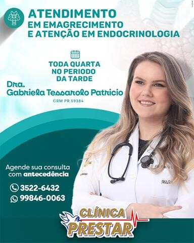 No dia 25 - a Dra. Gabriela Tessarolo Patricio estará atendendo clientes interessados em saber mais sobre emagrecimento e atenção a érea de endocrinologia