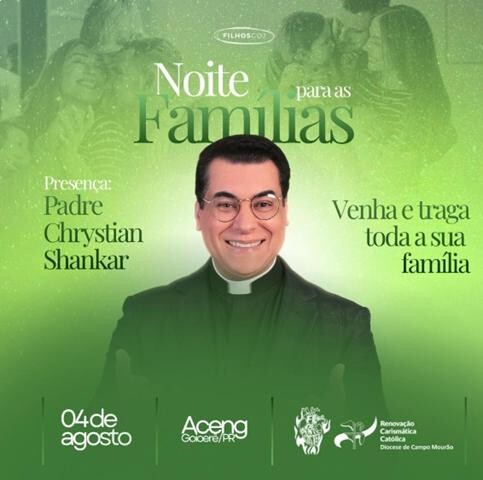 O encontro contará com a presença do Padre Chrystian Shankar, conhecido por suas pregações e momentos de espiritualidade voltados à fé e à restauração das famílias.