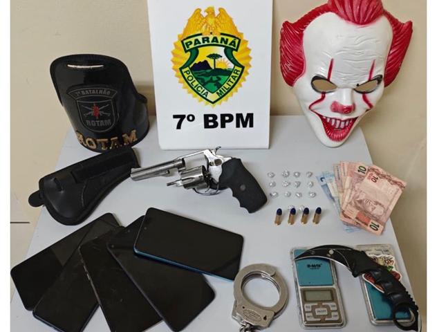 No local onde o suspeito foi encontrado, os policiais apreenderam a algema retirada, uma arma de fogo com munições, balanças de precisão, objetos diversos e uma quantia em dinheiro, reconhecida como sendo de posse do abordado.