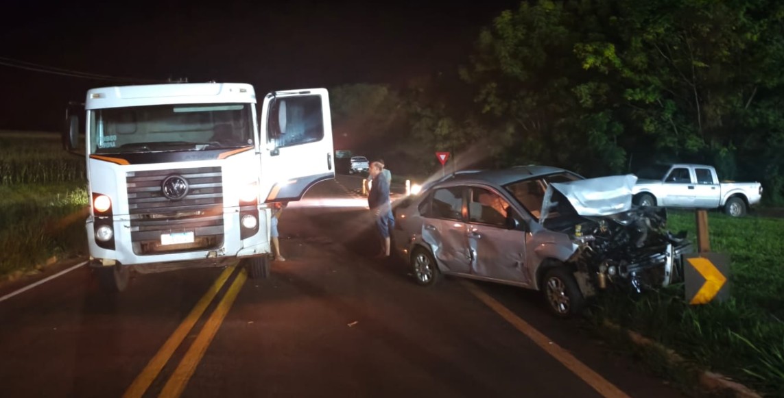 Um acidente envolvendo três veículos deixou pessoas feridas na noite deste sábado, 18, por volta das 19h20, na PR-239, no km 480 + 600 metros, no município de Campina da Lagoa.