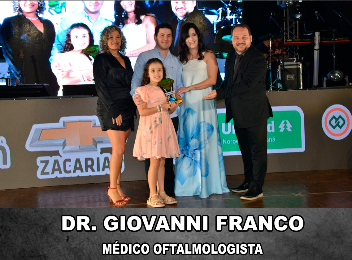 O médico oftalmologista Dr. Giovanni Franco foi um dos profissionais reconhecidos no Prêmio ACIG – Melhores do Ano, realizado no último sábado, 18, em Goioerê. A premiação, que neste ano teve como tema “Seu brilho te fez vencedor”, destaca empresas e profissionais que se sobressaem em suas áreas de atuação no município.